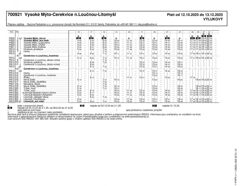 18. 11. 2024 - Změny v jízdních řádech autobusů
